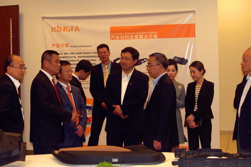 美国当地时间5月11日下午,正在美国访问的中共中央政治局委员、广东省委书记胡春华,在中国驻美大使崔天凯陪同下,率广东省代表团莅临位于美国密西根州坎顿市的金发(美国)有限公司参观考察。